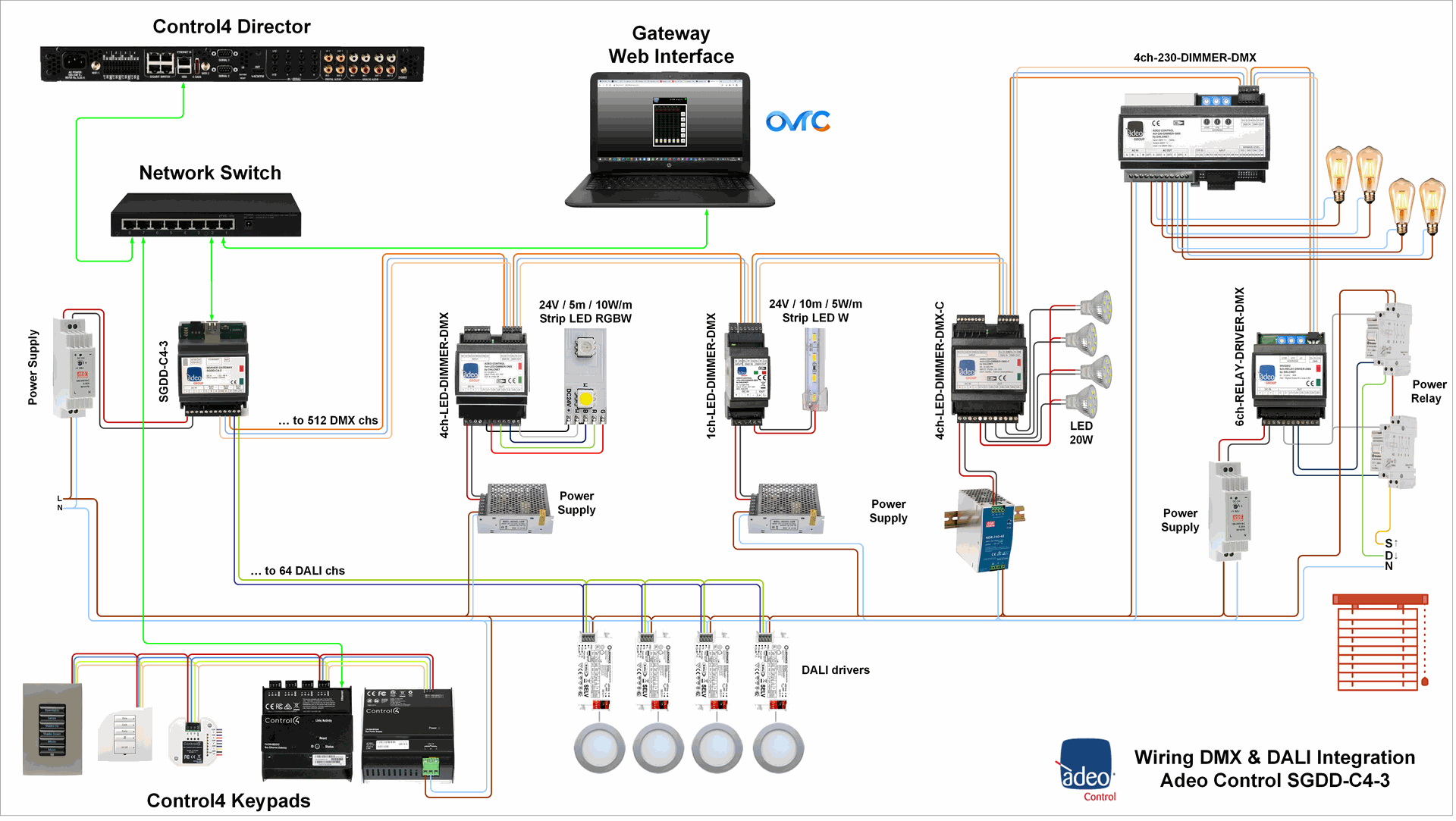 Server Gateway IP DALI2 & DMX (simultaneous), DALI addressing for DT8 DALI devices, free Control4 Drivers (Network, RGBW and Tunable White DT8, Dimming Light, HSV Color and Relay), Support 512 connection (all DMX channels).). 5 years warranty.